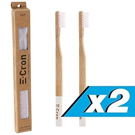 2 x E-Cron Bamboo Toothbrush (White) with Eco-friendly, 100% organic and biodegradable toothbrush handle. Your Natural…