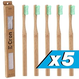 5 x E-Cron Bamboo Toothbrush (Green) with Eco-friendly, 100% organic and biodegradable toothbrush handle. Your Natural…