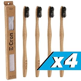 4 x E-Cron Bamboo Toothbrush (Black) with Eco-friendly, 100% organic and biodegradable toothbrush handle. Your Natural…