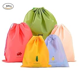 Set of 5 Drawstring Bags Waterproof Plastic Storage Pouch for Travel Sport Gym PE
