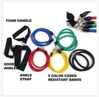 *Strong cushioned foam handles with zinc alloy clips and D-ring. *Easily creating over 30 different resistance levels by attaching 1, 2, 3, 4, or all 5 bands to the