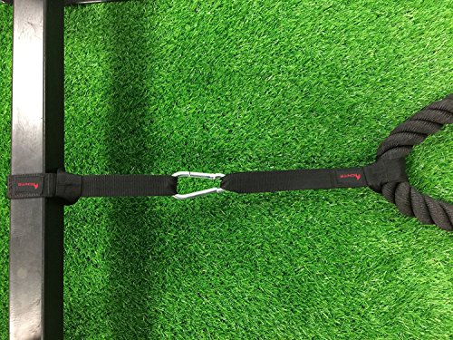 HARDCORE DURABILITY: Only using the most durable of commercial grade materials, our battle rope anchor straps are made of double sewn, reinforced nylon webbing with a max load of 1,500 lbs to resist brutal Crossfit workouts. To top things off, we have included a durable stainless steel carabiner hook that will live on repetitive battle rope movements.