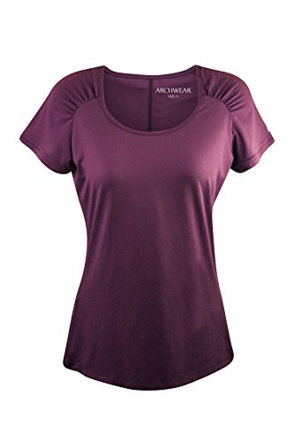 Archwear Women’s Quick Dry Active Yoga Short Sleeve Shirt, Dark Purple, Sizes S-XL