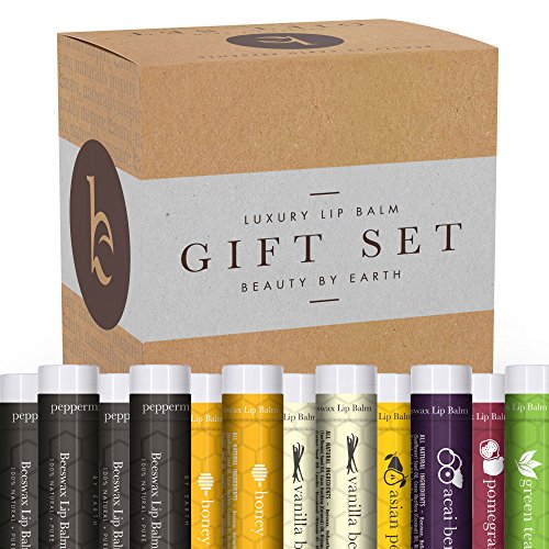 ESSENTIAL MOISTURE: Your lips need love. Without a little outside help, lips can easily end up dry, cracked, chapped. Our organic lip balm gift set is here to give your lips a number of help. Stuffed with 12 of our favorite natural lip butter flavours (including peppermint, honey, vanilla, green tea, acai berry, friuty pear and pomegranate), this chapstick set has everything you want to keep your lips healthy, smooth, supple, and looking great all year round.