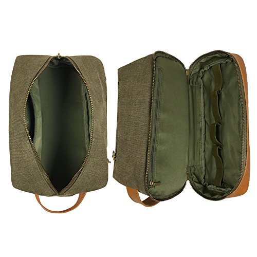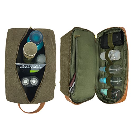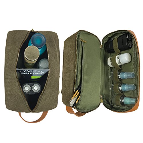 MULTI-COMPARTMENTS – 2-layer design. Roomy upper main compartment, featuring a zippered pocket for small valuables and an exterior zippered pocket for easy storage and access to commonly used items, holds toiletries, skincare products, shoehorns and other shuttle products. Elasticated lower compartment serves an interlayer and holds more shuttle bottles and shaving kit. Inner zippered pocket in lower compartment helps store small bottles of medicine, dental floss, shaving cream, shoe polish, etc.