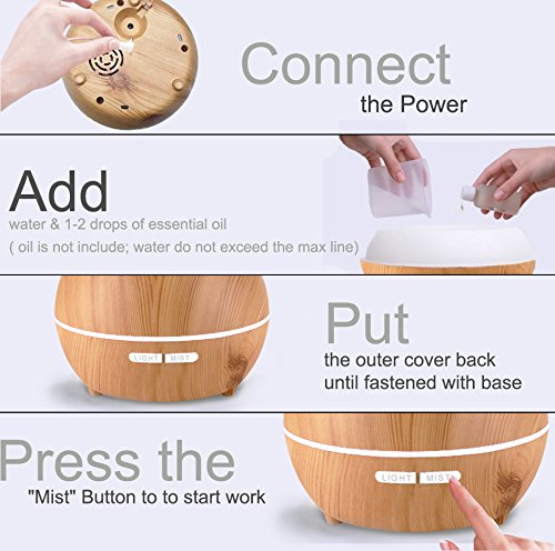 【 Aromatherapy & Our Inspiration 】 – Never seen a wood grain oil diffuser in a such lowest price despite the fact that in Black Friday. More amazing is that multifunction aromatherapy device with it.It features a large and easy to clean 250ml water tank,a 7-color LED light that you’ll be able to change to fit your mood,two mist stream modes,as well as a safety auto shut-off function To give protection to from burning out and ensure safety,energy efficiency and peace of mind.