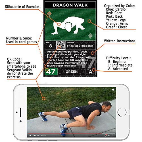 It’s truly easy to get started. You don’t need equipment or memberships. You don’t have to plan or research anything. Scan the workout cards with a smartphone for online videos of Sergeant Volkin demonstrating the exercises. Visit our website for dozens of free card and dice games and instructional videos.