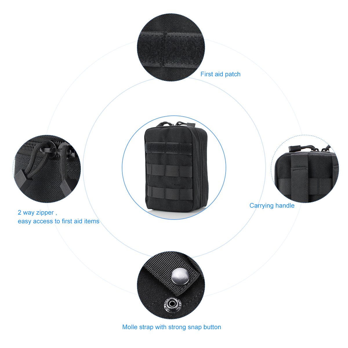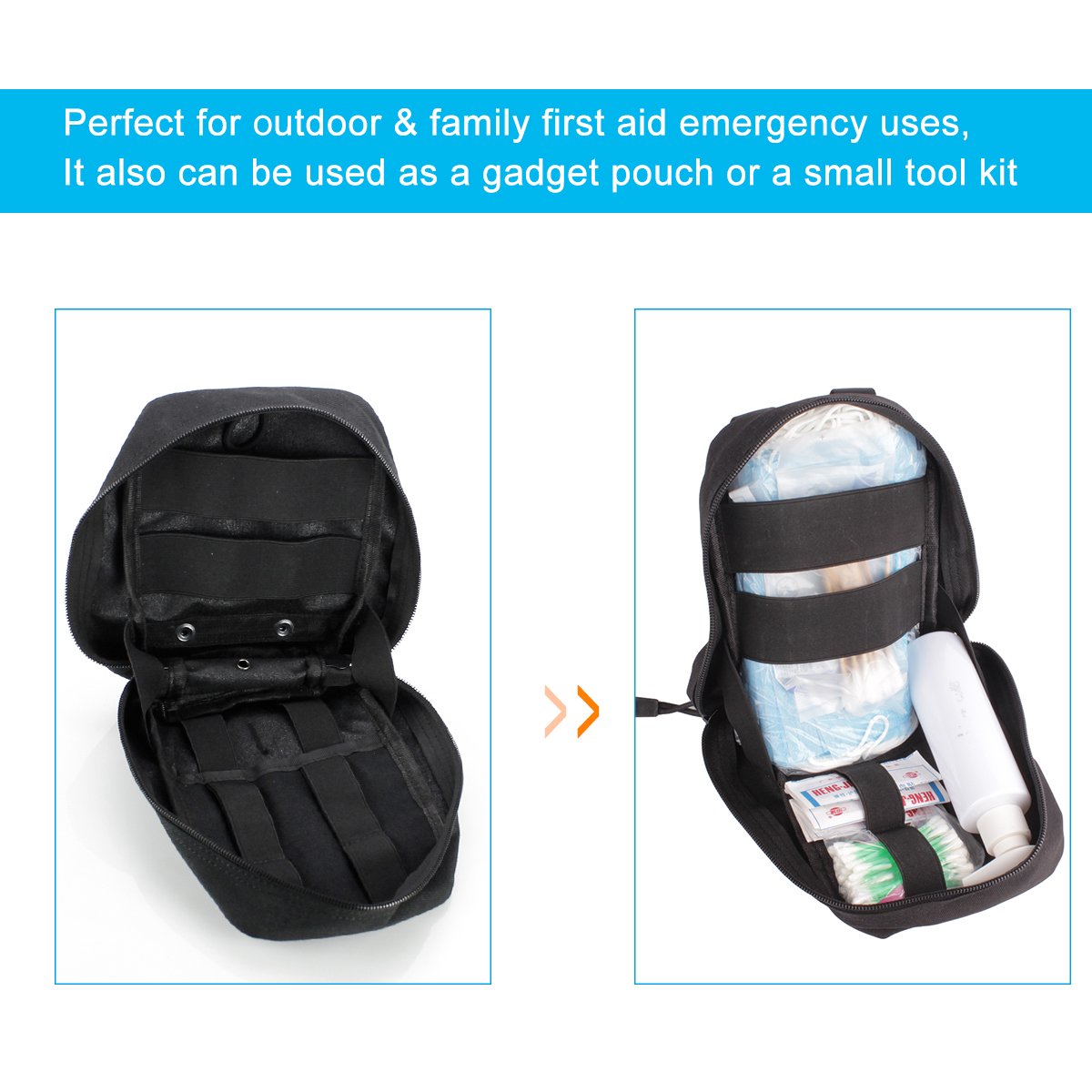 Our first aid pouch has a 2 way zipper ,simple get admission to to first aid items.