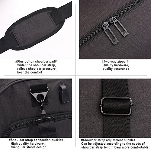 【SHOES COMPARTMENT】: Equipped with a shoes compartment, can a pair of shoes. Duffel gym bag with exterior zipped compartment, there is two ventilated air vent that to keep your shoes and dirty gear separate, alleviate the odor and other issue. Widened and thickened shoulder straps with breathable mesh, relieve the pressure of your shoulders.