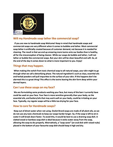 Made in small batches to ensure quality. No artificial colorants. We don’t imagine in soap that only smells good, or is just pretty. If an ingredient does not help the skin we do not add it to our products. Handmade with fresh All-natural ingredients. NO harmful chemicals or preservatives