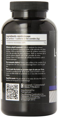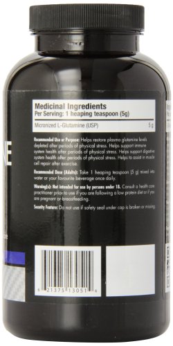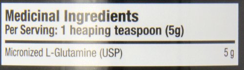 Medicinal Ingredients: Micronized L-Glutamine (USP) Vegetable Source 5g. Beneficial Dose for Adults: Take 1 heaping teaspoon (5 g) mixed into water or your favourite beverage once day-to-day. Cautions and Warnings
