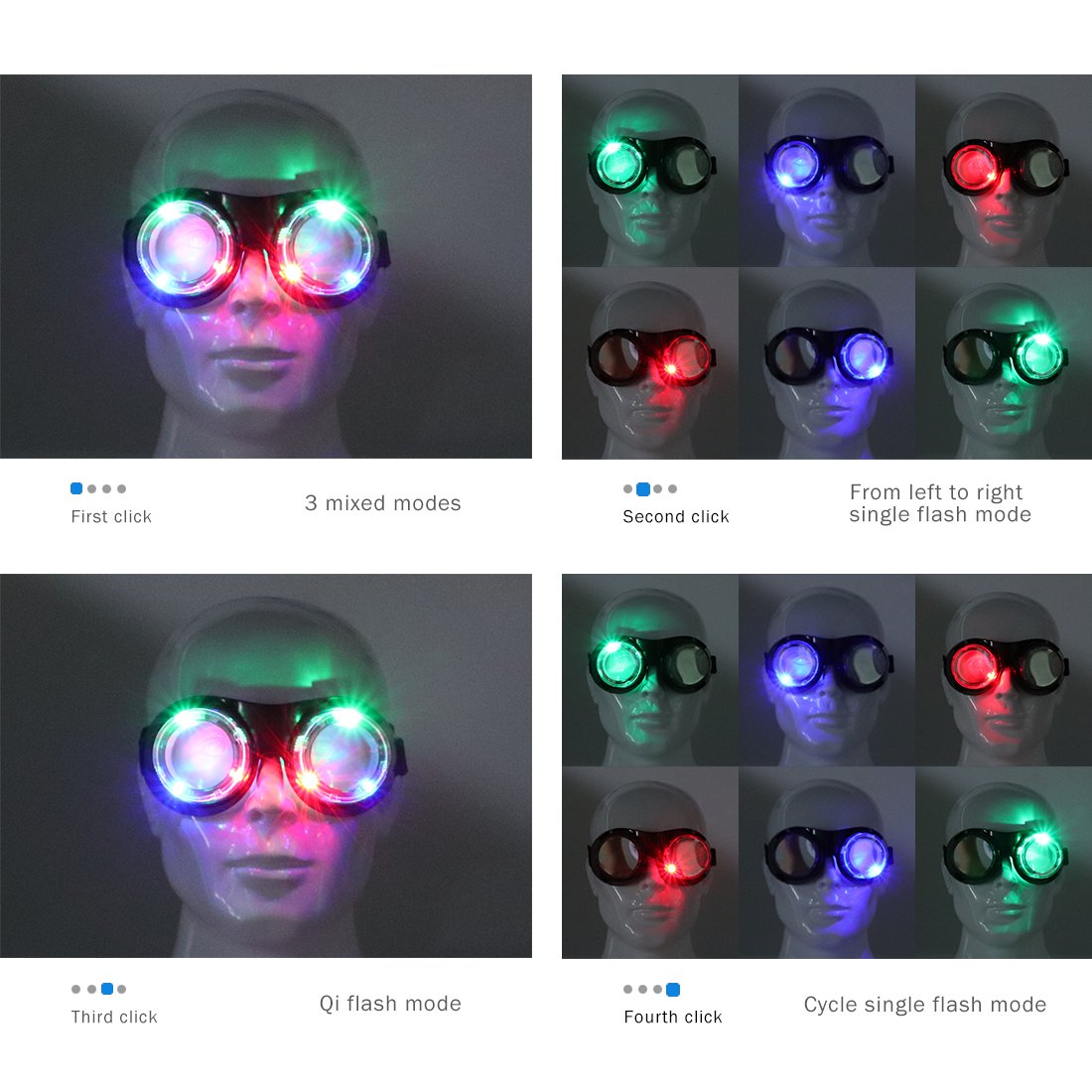 This LED goggles have 6 LED lights,4 different flash modes and unique appearance design, which bring you a mysterious and cool feeling.