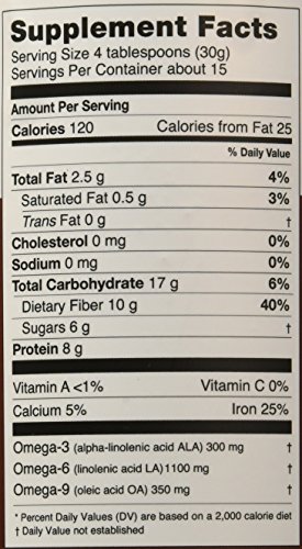 Comprises 8g protein, 1.4g omegas and 10g fiber per 30 gram serving