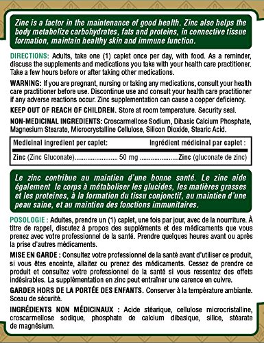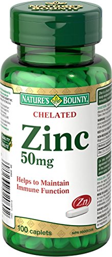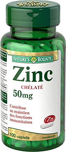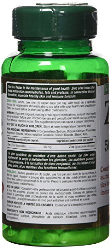 Nature’s Bounty Zinc Supplement, Helps Maintain Immune Function, 50mg, 100 caplets, Multi-colored
