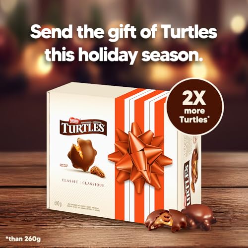 Celebrate With TURTLES: This large, 600g gift box of NESTLÉ TURTLES is perfect for gift-giving or sharing with friends and family. The sturdy carton gets rid of the need for