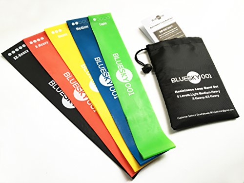Resistance Loop Band Full Set of 5 Levels – BlueSky 001 Professional-Grade Fitness Bands for Yoga, Pilates, Dance…