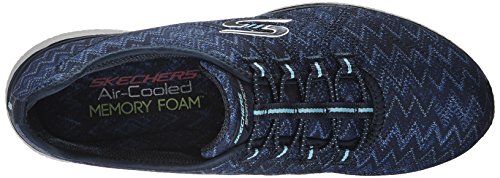 Transfer up your sporty taste and at ease stride with the SKECHERS Microburst – Fluctuate shoe. Comfortable clean zigzag print material higher in a slip on bungee laced sporty convenience strolling sneaker with Burst subject material midsole and Air Cooled Memory Foam insole.