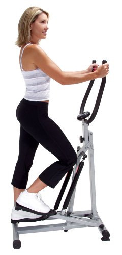 Pewter/Black finish. Independent design stepping action. Two adjustable-resistance hydraulic cylinders provide a smooth stepping motion. Foam covered handlebars for comfortable gripping. Battery-operated electronic monitor tracks choice of steps per minute, choice of steps all over the workout, workout time, and calories burned. Folds to store away within the closet or under the bed. Rolls for simple portability. Skid resistant rubber floor protectors also prevent skidding. Slide resistance pedals for added comfort and stability. Heavy-duty steel frame construction. Attractive pewter-colored frame. Some assembly required. Weight capacity: 250 lbs.. Warranty: 1 year for the frame, 90 days on parts. 16.25 in. W x 30.25 in. L x 54.5 in. H (45 lbs.). .