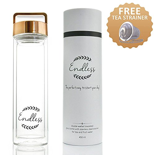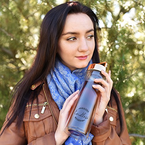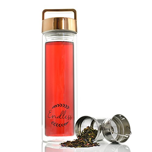 HIGH QUALITY MEETS ELEGANCE: Feast your eyes on the stylish, portable glass tea infuser set! Its unique modern design, the 24 oz glass sophisticated bottle and the double-wall exterior guarantee you’re going to have your favourite tea cup infuser- water bottle with you all day, keeping its content hot for one hour at least.