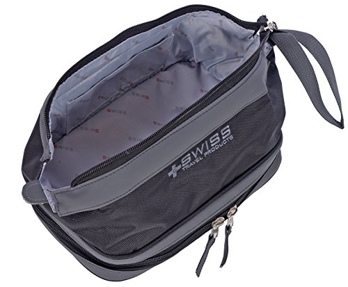 Swiss Trip Products deluxe toiletry kit features a big main compartment to store your entire essentials. This Trip kit sleek design is fabricated with strong resistant 1680d polyester. The zippered
