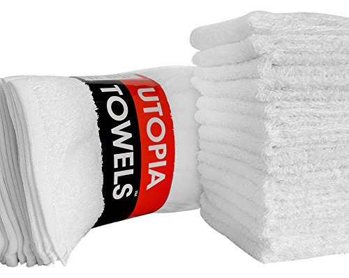 Set includes 24 highly absorbent washcloths in white measures 12 by 12 inches